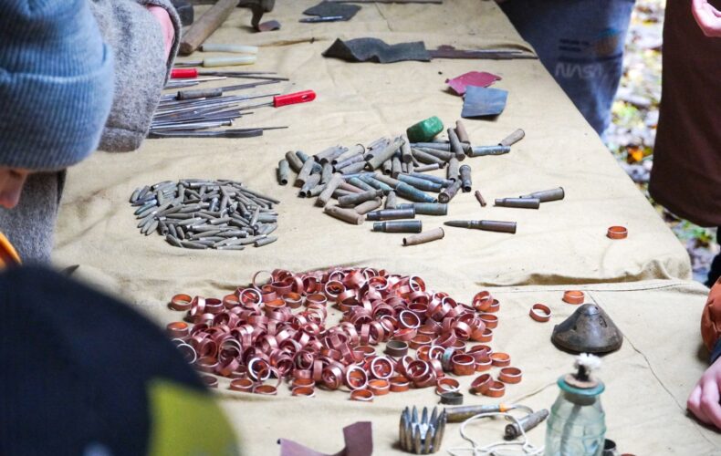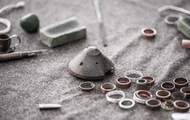 Во время Первой мировой войны латышские стрелки на фронте делали интересные и в то же время практичные вещи. Материалом для них служили гильзы, пули и осколки гранат. Из камней получались настоящие произведения искусства — кольца, подсвечники, ложки и украшенные подставки для карандашей.