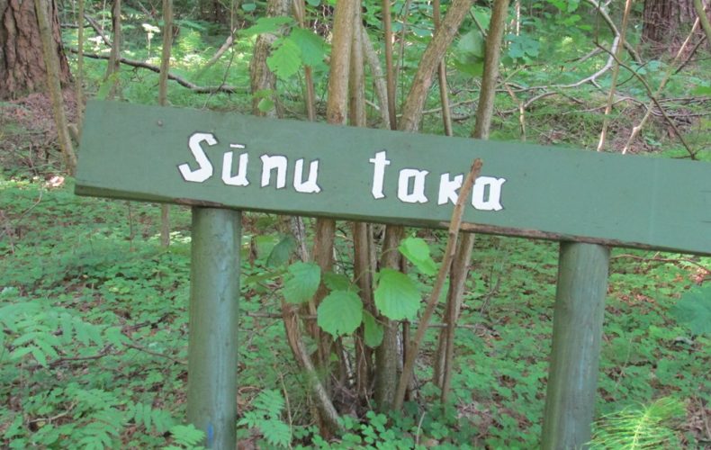 Длина Моховой тропы составляет 800 м, а ее название связано с рассказом Андрея Упитиса «Мальчики из Моховой деревни». Три человека из деревни Сун — Андрс, Ешка, Букстиньш — бродили по этим местам в поисках следов Мишки Счастья. Если подняться от липовой аллеи и свернуть налево на Моховую тропу, то кажется, что тропинка ведет в гору. Так и есть, и к моменту достижения озера Калнамуйжа участники прогулки поднялись на 18 метров над уровнем воды в Даугаве.