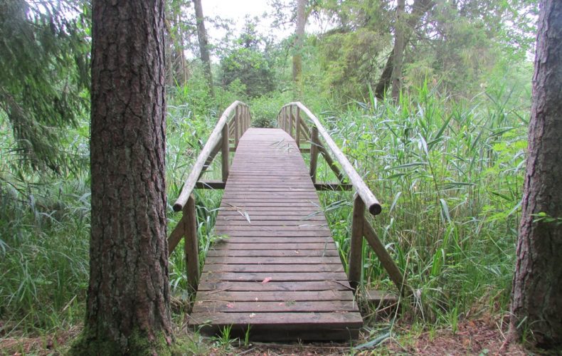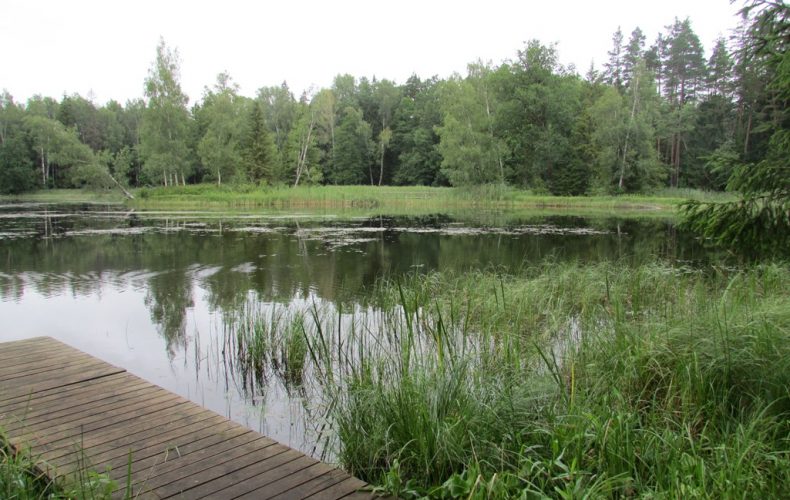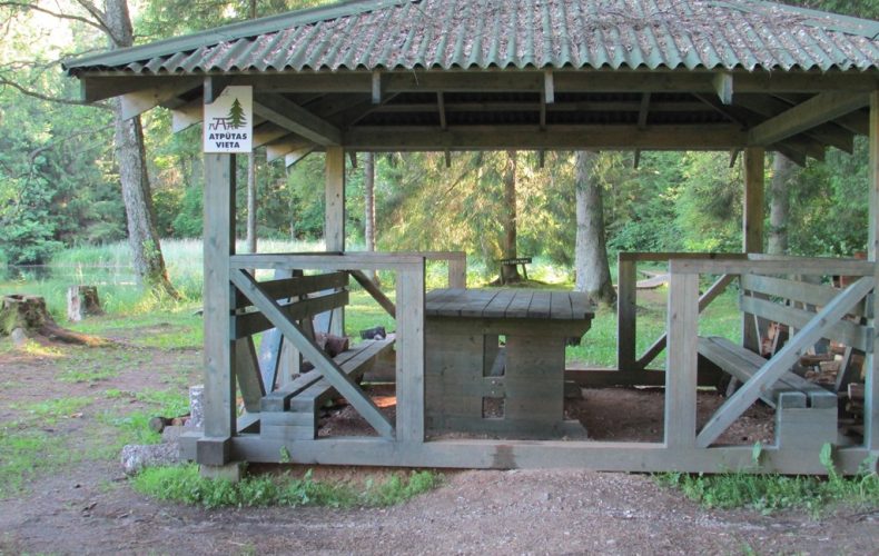 На берегу озера Калнамуйжа есть беседка, здесь можно посидеть, отдохнуть, пообедать. Можно развести костер, а поднявшись по пешеходному мосту, увидеть чистую воду.