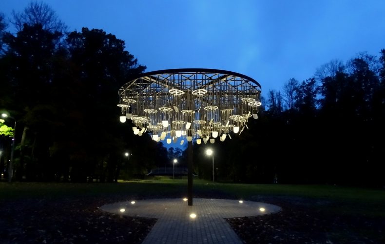 Дерево ветряных курантов состоит из 324 ветряных курантов с гербами всех регионов Латгалии, которые исполняют музыку 48 ветряных курантов. В Балви установлен самый большой в мире ансамбль ветряных курантов. Во всем мире есть ветряные куранты с более длинными и толстыми столбами, но нигде нет такого количества курантов в одном месте.